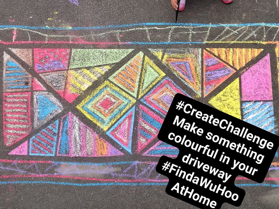 Make something colourful in your driveway. We used chalk and tape #FindaWuhooAtHome #CreativityChallenge