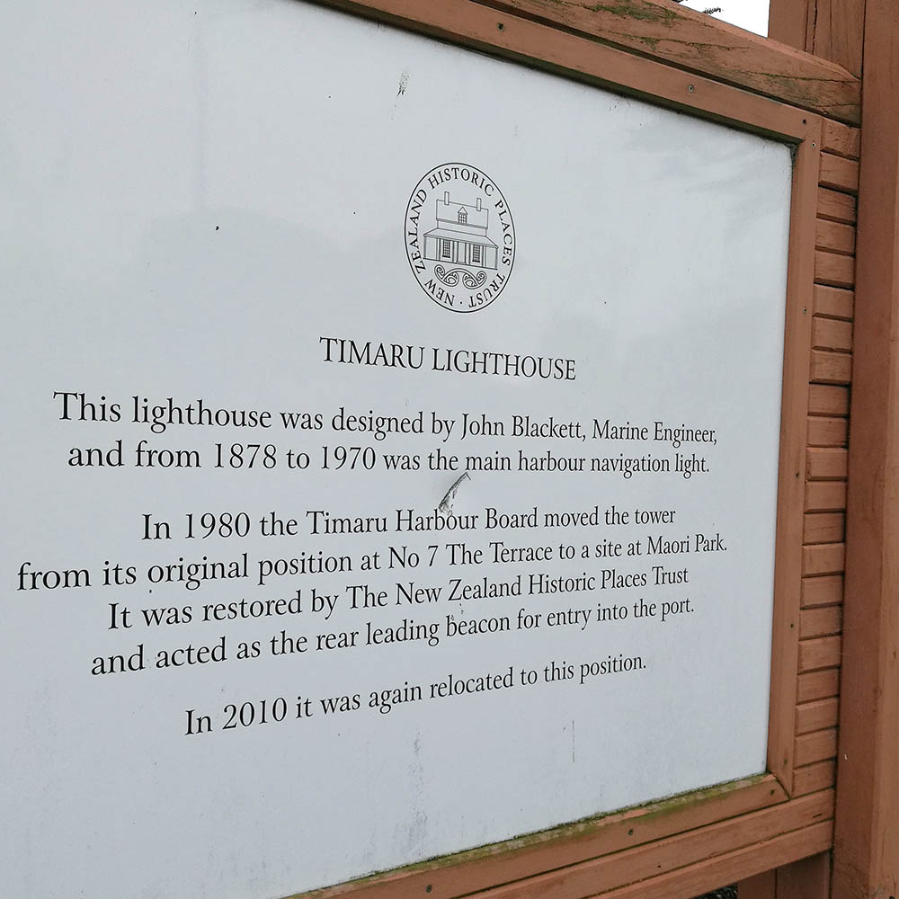 Did you know: It was erected in 1878 at the top of the Terrace, No. 7, for a cost of £350 with a keepers house. It's light was able to be seen about fourteen miles nautical miles in clear weather. In March 1878 Captain Meredith was appointed by the Harbour Board to the position of lighthouse-keeper, at a salary of 50 guineas per annum. In 1980 the Timaru Harbour Board moved the tower to Benvenue Street, Maori Park. and it was then shifted again in 2010 several hundred metres down the street, across the rail track to Benvenue Cliffs.