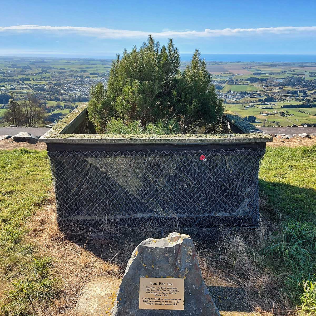 This tree, A direct dedcendent of the Lone Pine Tree at Gallipolo was planted in August 2015 by Waitmate RSA and is a living memorial to commemorate the 100th Anniversary of the end of the Gallipoli campaign August 1915.